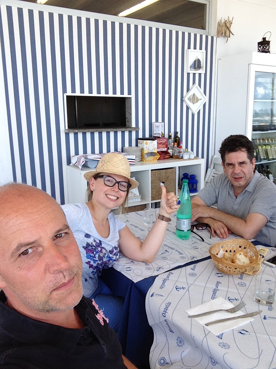 Jean-Michel, Sophie and Stéphane at the restaurant in Torvaianica